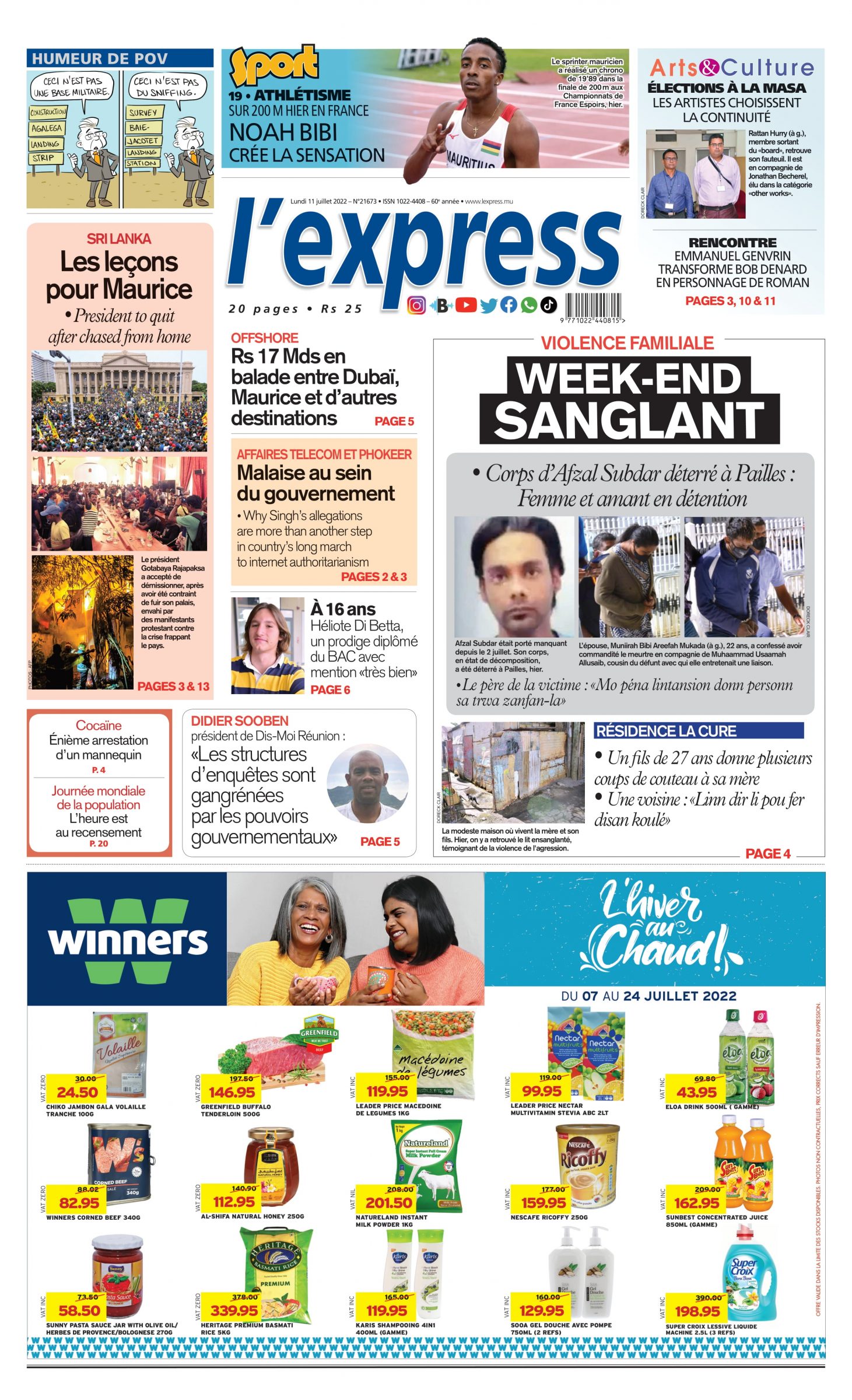 En une de l'express; Violence familiale: week-end sanglant; Autre titre; Sri Lanka: les leçons pour maurice.
