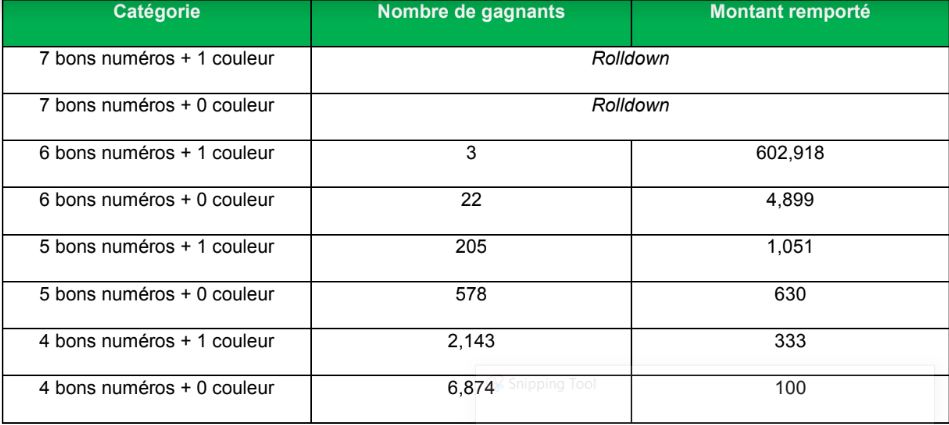 3 joueurs remportent le jackpot pour ce 87e tirage de la Loterie Vert en cochant que 6 bons numéros et la bonne couleur. Ainsi ils empochent Rs 602,918 chacun.