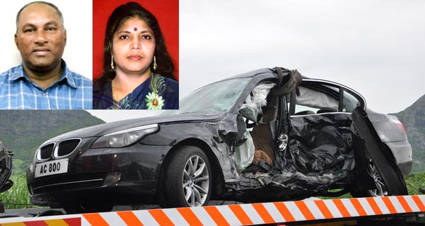 L’accident s’est produit à proximité du rond-point de Beaux-Songes. Il semblerait que Rishi Ramchurn, qui est Tax Adviser dans une entreprise privée, était en train de doubler un autre véhicule lorsqu’il est entré en collision avec le 2x4 qui arrivait en sens inverse. L’impact a été d’une rare violence du côté gauche de la BMW, dont la carrosserie a été enfoncée. Le couple, qui était installé de ce côté de la voiture, a été tué sur le coup.