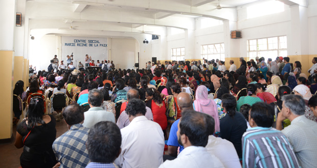 Des enseignants massés au centre social Marie Reine de la Paix, à Port-Louis.