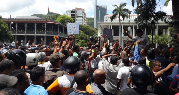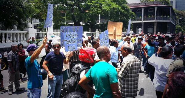 «Assez torture nou», «Gilet fluo a soir oui. Li zour non». Munies de pancartes, environ 500 personnes ont déferlé dans les rues de la capitale, ce mardi 7 janvier, pour protester contre le port obligatoire, pour les motocyclistes, du gilet réfléchissant la journée. La circulation a été bloquée. Cette manifestation a été organisée par un groupe sur le réseau social Facebook, «Manifestation contre gilet fluoressant».