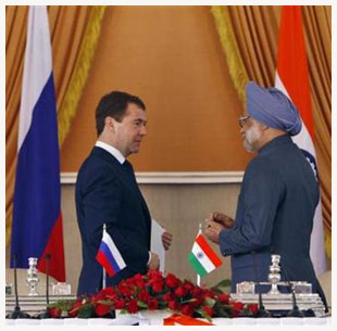 Medvedev, accompagné d''une importante délégation des milieux d''affaires, a eu des entretiens à New Delhi avec le Premier ministre Manmohan Singh et la dirigeante du parti du Congrès au pouvoir, Sonia Gandhi. Il visitera mercredi le palais du Taj Mahal à Agra et la capitale économique de l''Inde, Bombay.