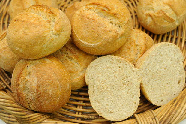 Réalisation : Pesez séparément les ingrédients. Procédez au pétrissage jusqu’à l’obtention d’une pâte lisse. Si vous utilisez une machine à pains, versez-y les ingrédients et pétrissez pendant trois minutes en première vitesse et six minutes additionnelles en seconde vitesse jusqu’à ce que la pâte soit lisse. Ensuite, laissez reposer pendant 1 heure à température ambiante. Puis, divisez en pâtons. Laissez détendre pendant 30 à 40 minutes sur du son fi n. Divisez le pâton en 10 morceaux d’environ 125 g chacun. Repliez les deux extrémités vers le centre pour donner la forme traditionnelle du pain maison. Laissez fermenter pendant 45 minutes. Incisez le centre de chaque pain et mettez au four préalablement chauffé à 240° pendant 18 à 20 minutes.