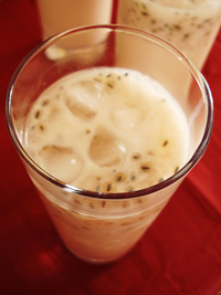 Ingrédients.200 g de lait en poudre, 7 tasses d’eau, 1 c.a.s d’agar-agar, 1 c.a.c de graines de tukmaria trempées dans une tasse d’eau, 2 c.a.s de sucre, 75 g d’amandes broyées, ½ tasse de sirop de rose, 1 boîte de lait évaporé, 1 c.a.s d’essence de vanille, 6 gouttes d’essence de rose, ½ boîte de lait concentré sucré