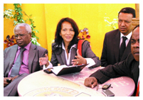 « Nous avons discuté en nous basant sur notre dernière entrevue », a déclaré d’emblée Elia Ravelomanantsoa, porte-parole de l’Escopol (au centre sur la photo). Et de poursuivre que « d’après la SADC, la mouvance des trois anciens présidents est déja prête à intégrer ce qui sera la nouvelle transition ». Ainsi, les chambres parlementaires seront modifiées en conséquence, intégrant « les trois mouvances et le plus de personnalités politiques de divers horizons possibles, comme l''''élargissement du Conseil supérieur de la transition (CST) et du Congrès de la transition (CT), en plus d''un gouvernement d''union nationale ».