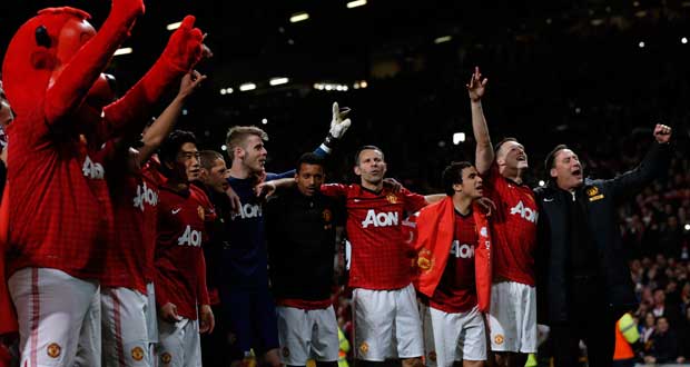 En disposant aisément à domicile d'Aston Villa (3-0) grâce à un triplé de Robin van Persie, Manchester United a décroché lundi son 20e titre de champion d'Angleterre.