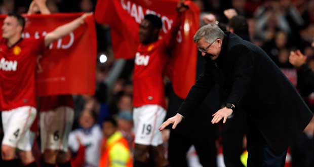 A quatre journées de la fin du championnat, les joueurs d'Alex Ferguson disposent de 16 points d'avance sur Manchester City, qui compte un match en moins, mais ne peut plus mathématiquement rejoindre son grand rival.