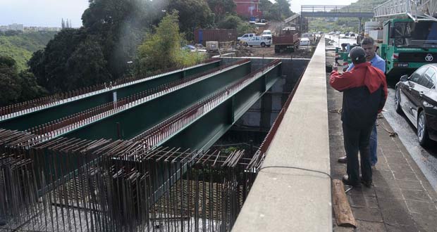 Douze d’entre eux font 23 mètres de long alors que les quatre autres font 41 mètres de long. Ils seront placés sur des poutres en béton armé avant que des traverses et plaques en béton ne viennent les recouvrir. L’on procédera ensuite à l’asphaltage et les mains courantes seront placées à l’extrémité.
