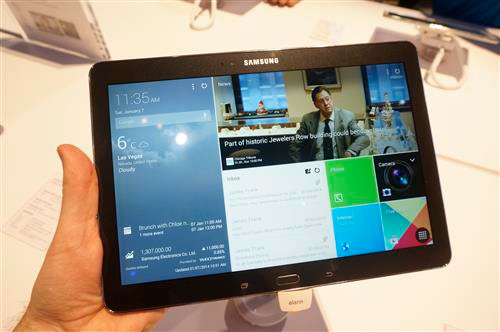La Tab Pro, elle, se décline en trois tailles ; 8,4 pouces, 10,1 pouces et 12,2 pouces. Samsung offre là une version améliorée de l’écran multiple. Le concept de «My Magazine» est embarqué. Le design des deux tablettes nous fait penser à la coque de la Note 3, qui a un toucher cuir.