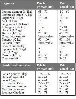 Le demi-kilo de pipengaille affiche une baisse de Rs 10 et le demikilo de carottes baisse par Rs 5 cette semaine-ci. Pas de changement du côté des produits alimentaires de base cependant.