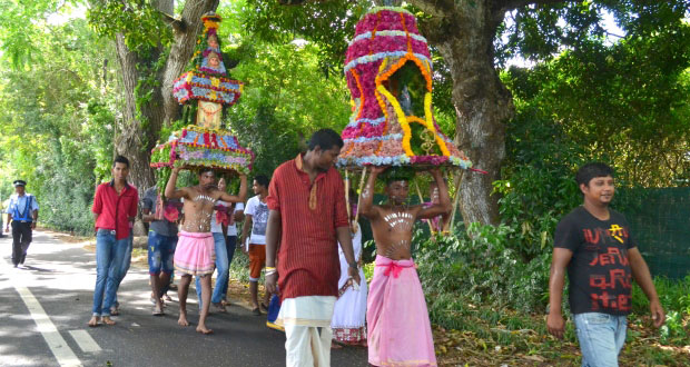 Après les sacrifices, les dévots se sont rendus au kovil à Kaylasson pour échanger leurs vœux.