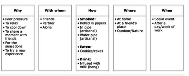 The awareness level of drugs of mothers was rather surprising. Drug names Cpasbien, Black Mamba, la colle, hashish, Gandia/Marijuana, Wazabi have been spontaneously mentioned. They are more alert since they have a constant fear that their children might be influenced and consume one of them.