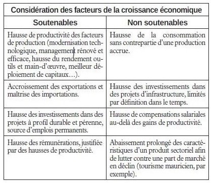 Ces quelques exemples montrent comment il est risqué de poursuivre une croissance économique sans tenir compte des conditions dans lesquelles elle est réalisée. En fait, la croissance est non-soutenable quand elle est basée sur une maximisation à court terme, que ce soit en matière de rémunération ou de consommation, par exemple. Par contre, la croissance devient soutenable et de qualité lorsqu’elle cherche à optimiser l’utilisation des facteurs à travers la recherche d’une productivité accrue, justifiant alors de meilleures rémunérations.