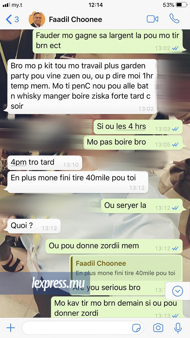 Après le deuxième viol, le jeune homme a tout raconté à sa mère et cette dernière l’a accompagné au poste de police. «Faadil Choonee m’a écrit pour me demander de retirer ma plainte», précise le jeune homme, mais il ne compte pas obtempérer. «Dépi sa, mo népli dormi. Enn gro tromatism sa. Li’nn viol mwa…»
