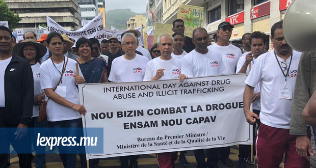 Pour marquer la Journée internationale contre l’abus et le trafic de drogue, le bureau du Premier ministre en collaboration avec le ministère de la Santé a organisé une marche, ce jeudi 27 juin. Pravind Jugnauth, le ministre Mentor et plusieurs autres membres du Parlement ont enfilé T-shirt, chaussures de marche et armés de pancartes, ont marché pour sensibiliser le public.