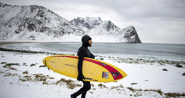 La légende du surf, Tom Carroll, s'offre de l'exotisme sur les vagues glacées de l'Arctique