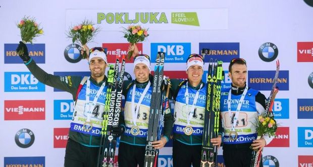 Biathlon: la France avec Fourcade s'impose lors du Relais messieurs à Pokljuka