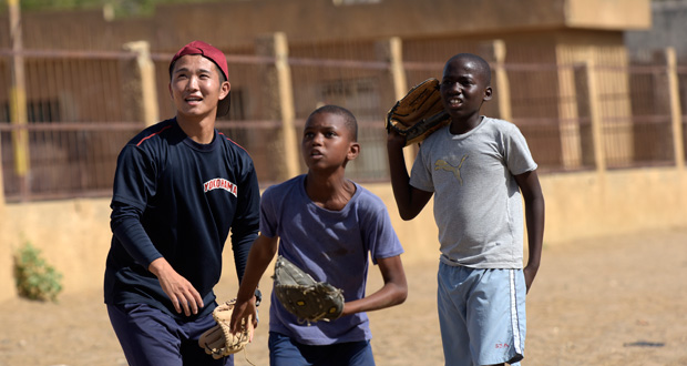 Au Sénégal, des enfants apprennent le base-ball américain avec un Japonais